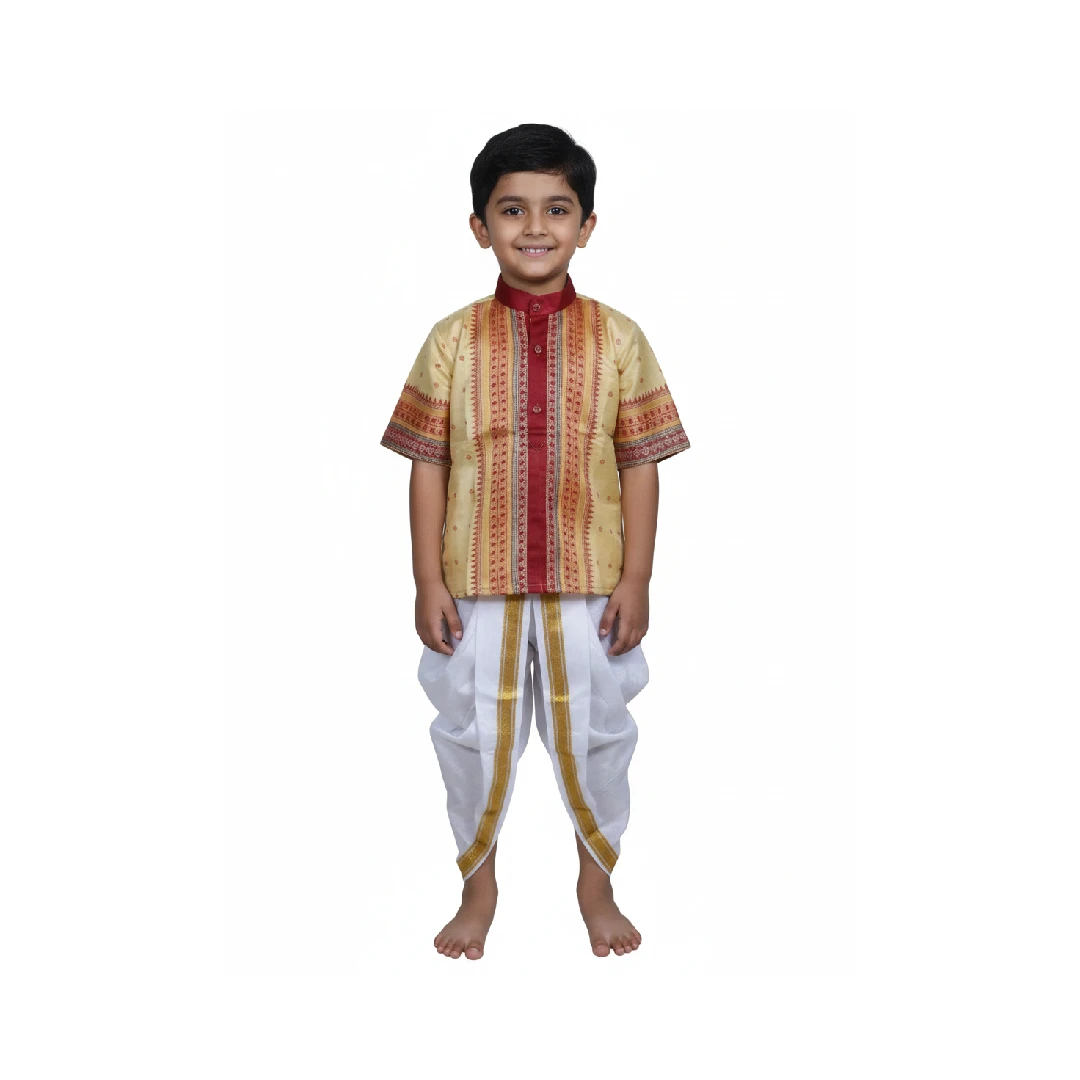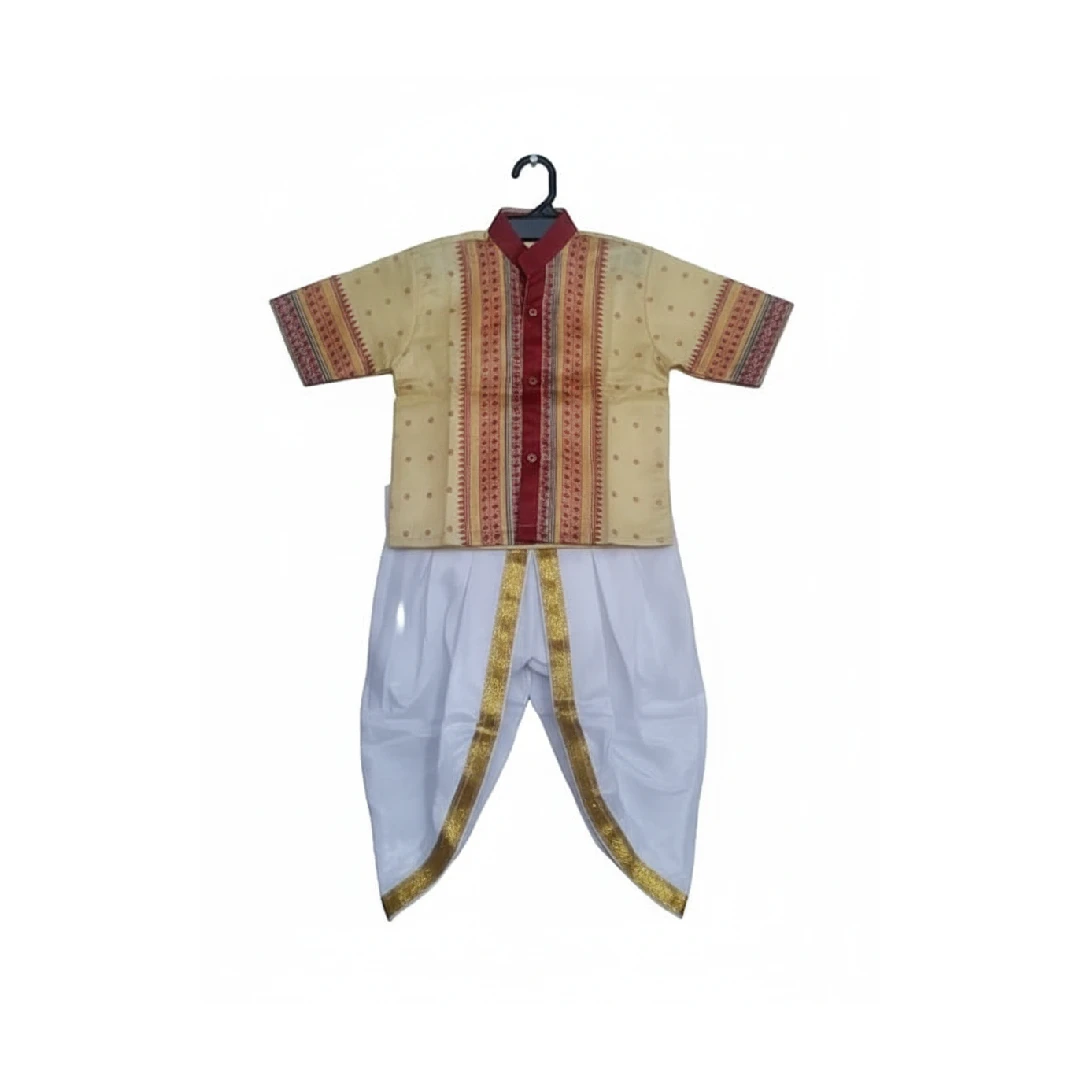 Celebrate the rich culture of Assam with this Assamese Traditional Bihu Dress for Boys. Inspired by the traditional attire worn during the famous Bihu festival, this costume is perfect for school cultural programs, fancy dress competitions, festivals, and traditional theme events.