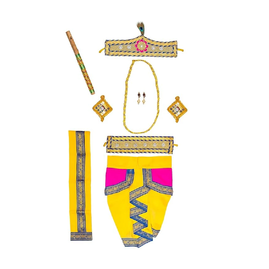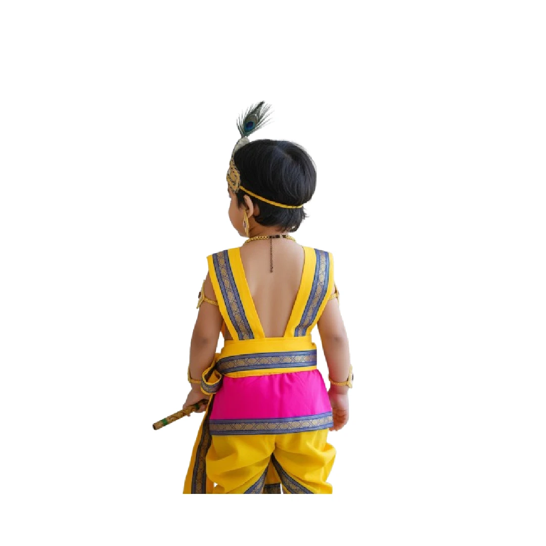 Dress your little one like the adorable divine child with this beautiful Krishna Dress for Baby Boys and Girls. Inspired by the traditional attire of Lord Krishna, this costume is perfect for celebrating the joyful festival of Janmashtami. The outfit reflects the charming and playful appearance of Bal Krishna, making your child look cute and festive during celebrations and cultural events.