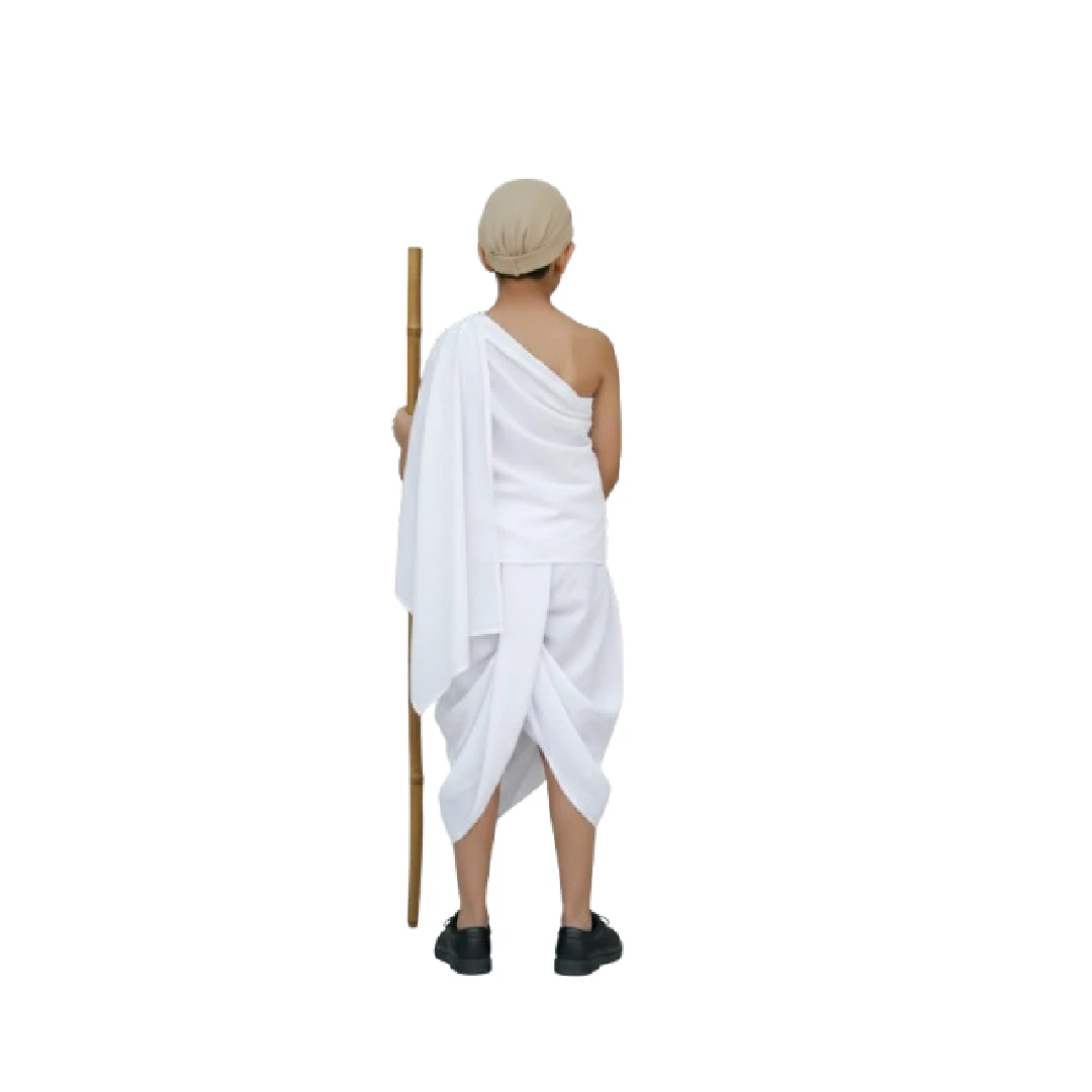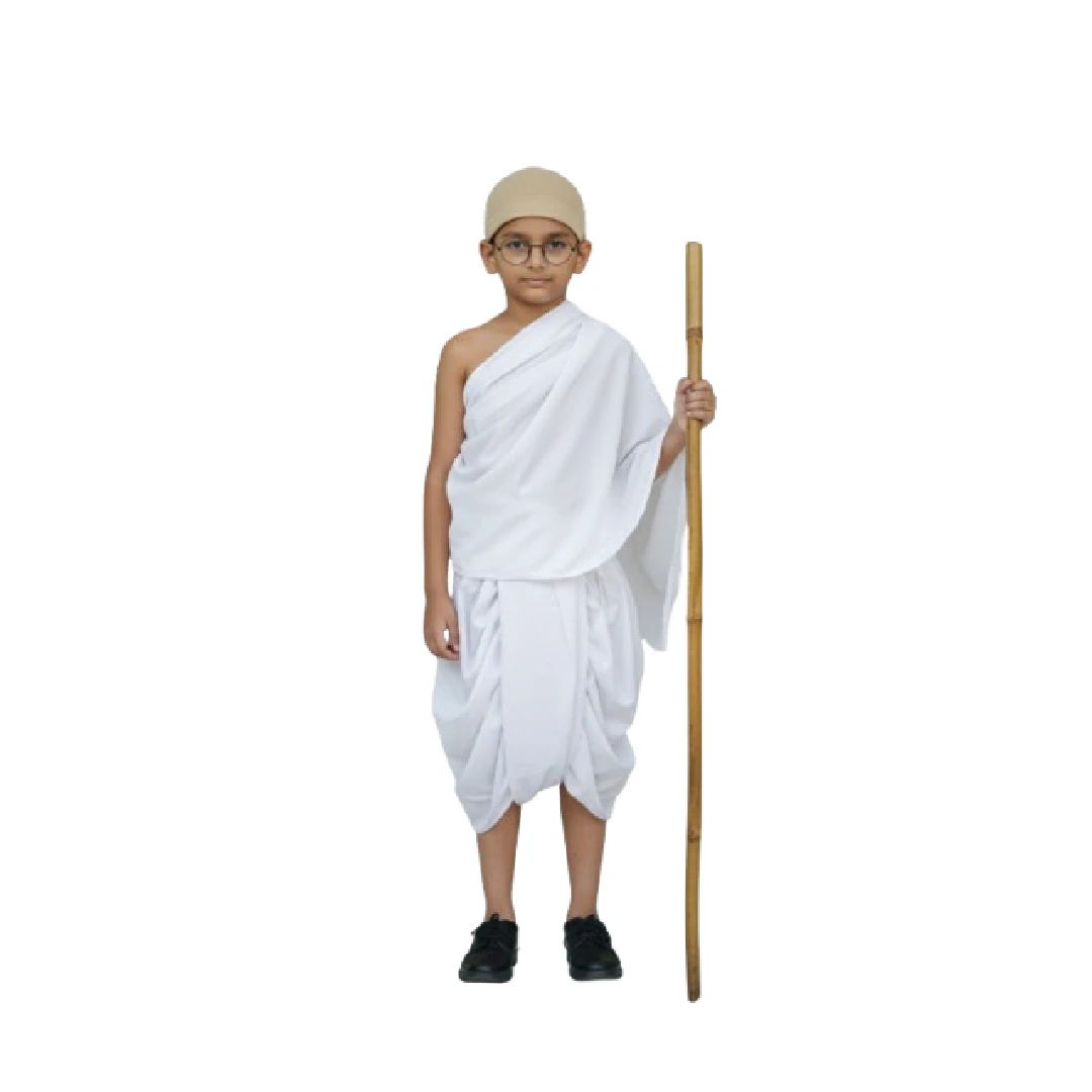 Let your child proudly represent one of India’s greatest leaders with this Mahatma Gandhi Bapu Costume Dress for Kids. Inspired by the iconic appearance of Mahatma Gandhi, this costume reflects the simplicity and dignity associated with the Father of the Nation. It is specially designed for kids who want to portray this legendary freedom fighter during school events, fancy dress competitions, and cultural programmes.