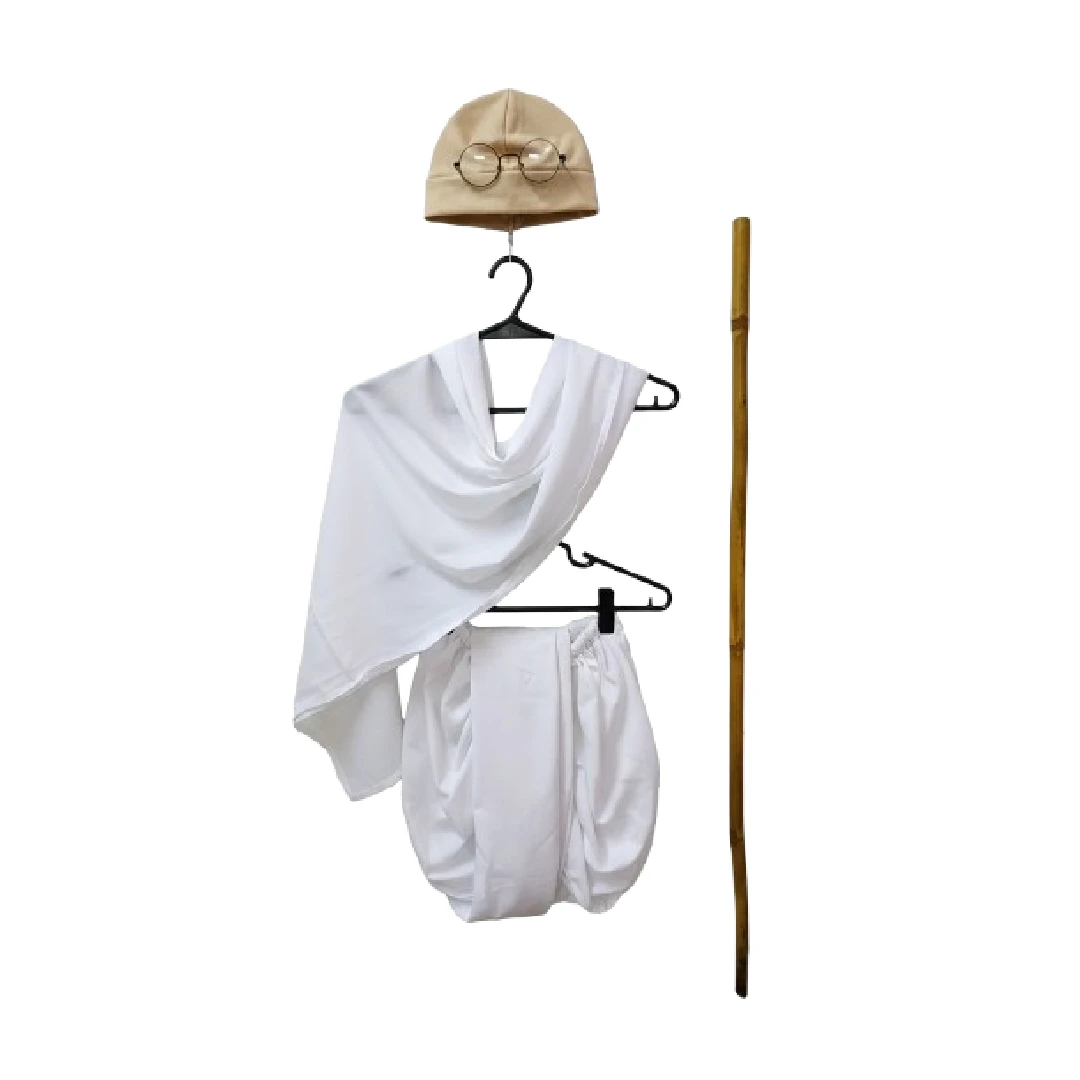 The costume includes traditional clothing and accessories that recreate the classic Bapu look. Made from comfortable and lightweight fabric, it allows children to move freely while performing on stage or participating in activities. This outfit helps kids learn about India’s history while proudly representing the values of truth, peace, and non-violence associated with Mahatma Gandhi.