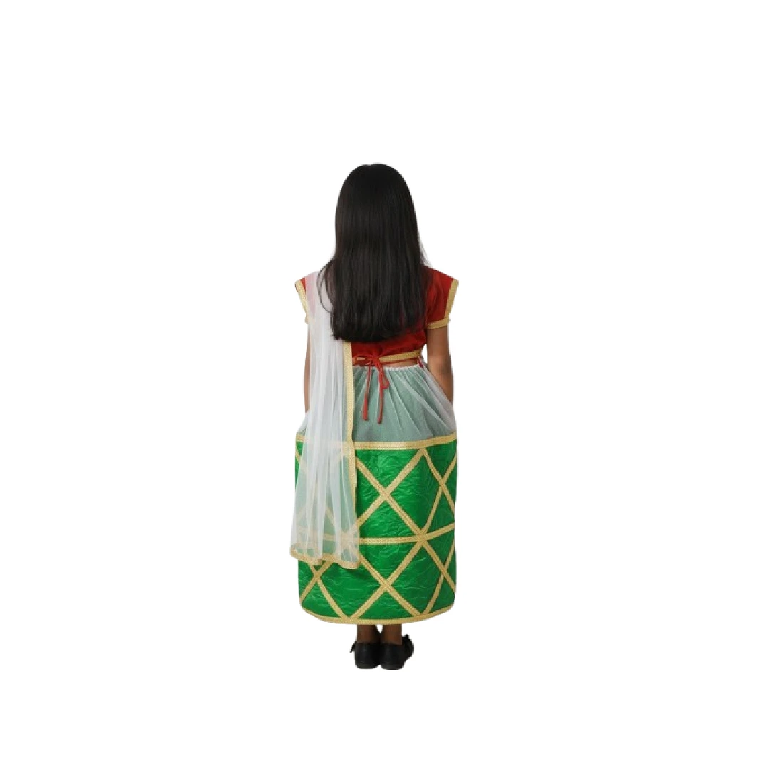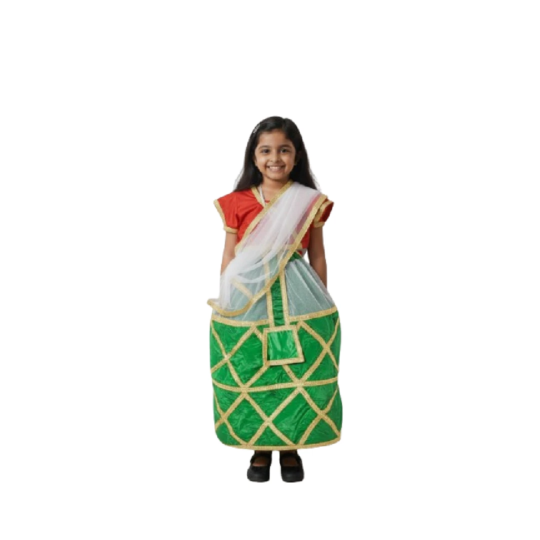 This costume is perfect for school events, cultural programmes, stage performances, and fancy dress competitions where children represent the beautiful traditions of India.