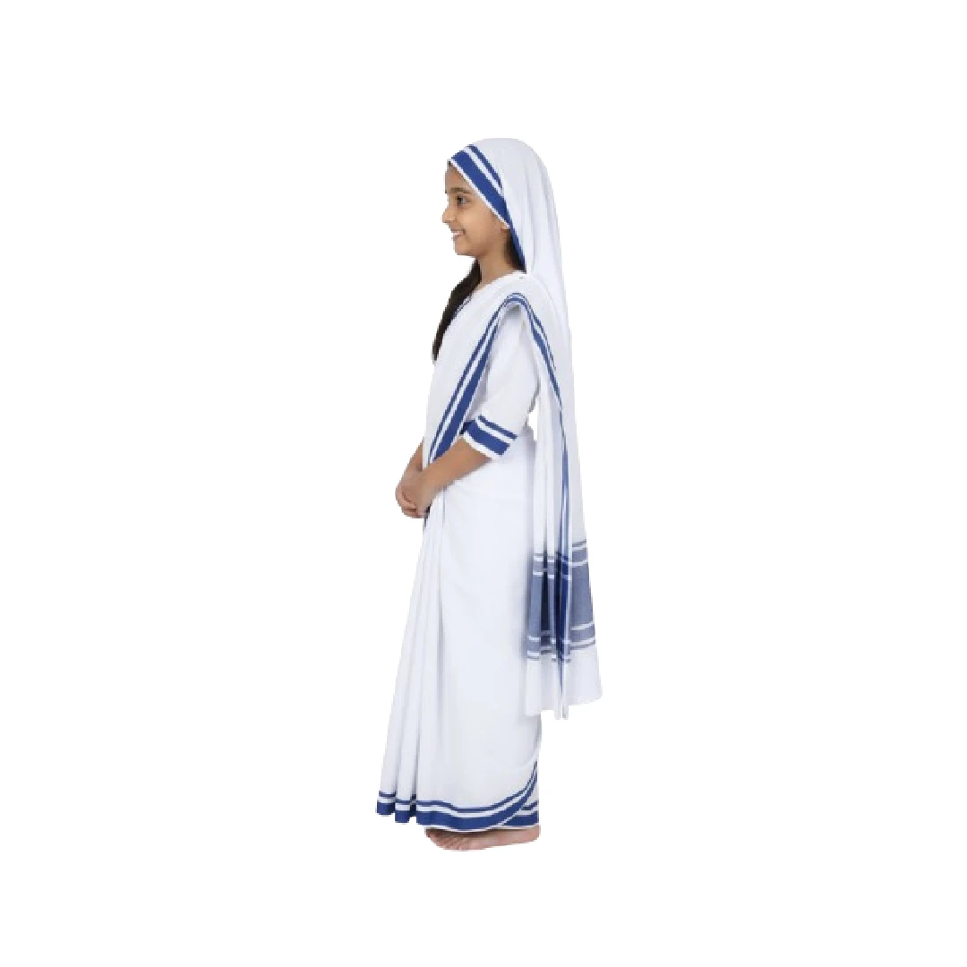 This costume is perfect for children participating in school programmes, fancy dress competitions, and cultural events where they portray inspiring personalities. Designed with soft and comfortable fabric, the outfit allows kids to wear it easily during performances or stage presentations. The included scarf completes the traditional look, helping children portray the beloved humanitarian figure with authenticity.