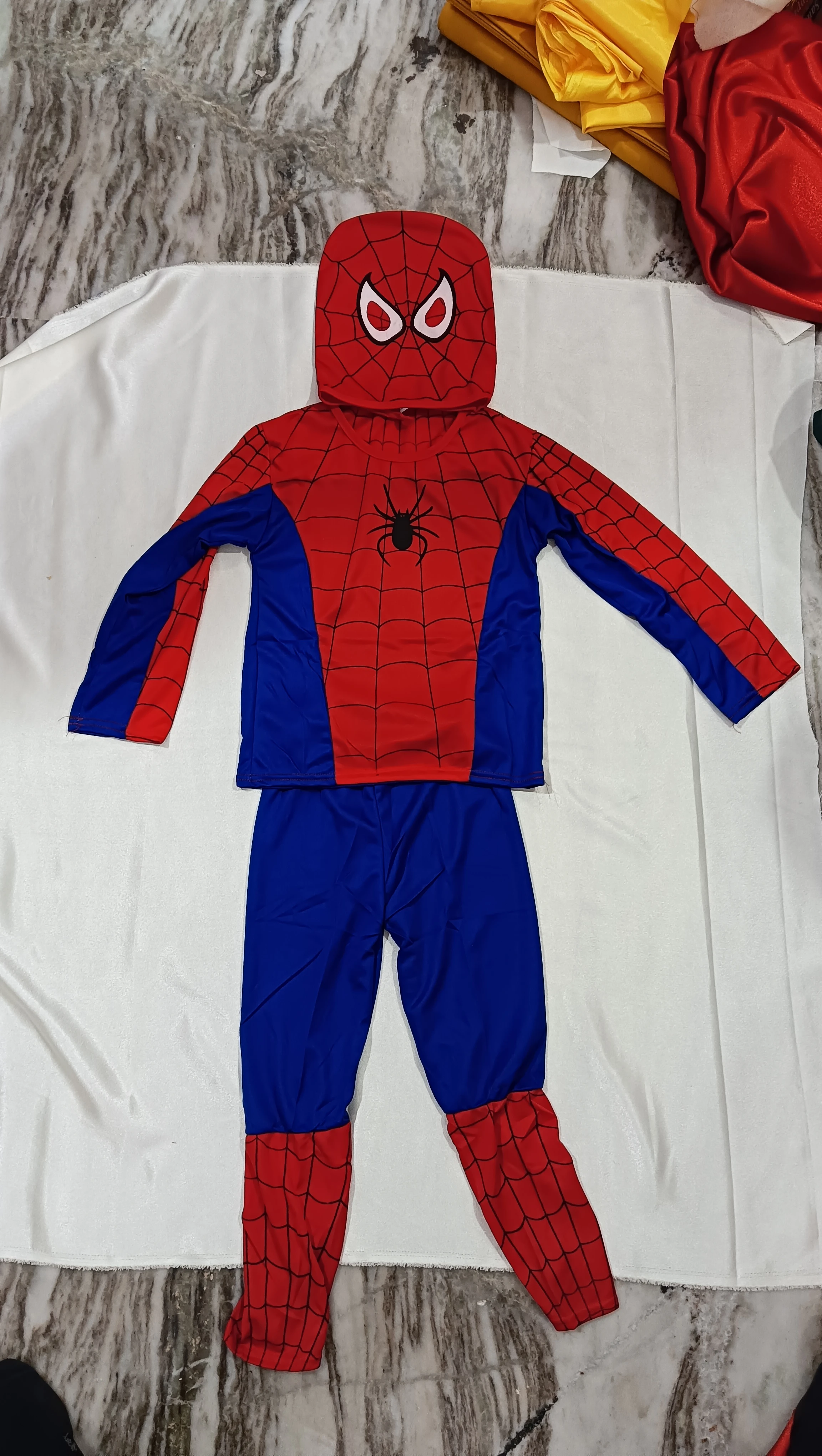 Made from comfortable and breathable fabric, the costume allows kids to move freely while playing or performing. The detailed spider design and bright colours give it an authentic superhero look. It also comes with a matching mask that completes the full Spider-Man appearance, making the costume even more exciting for children.